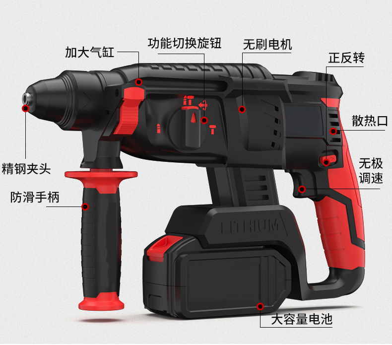 加大錘擊氣缸替代傳統(tǒng)插電電錘,精密大口徑氣缸,真空淬火,牢固耐用強(qiáng)勁沖擊力,效率更高