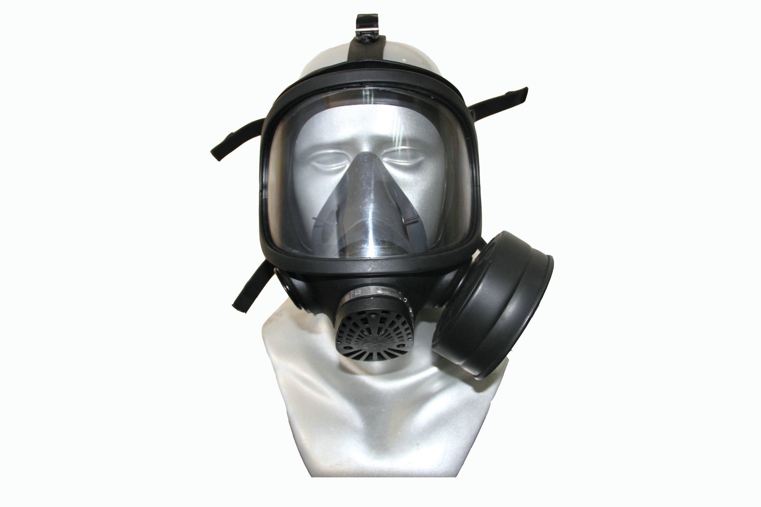 MF15A防毒面具主要由面罩、雙濾毒罐等組成。面罩主要由天然膠罩體(采用注射成型工藝,表面磨砂)、鏡片、呼吸通話器和頭帶等組成。