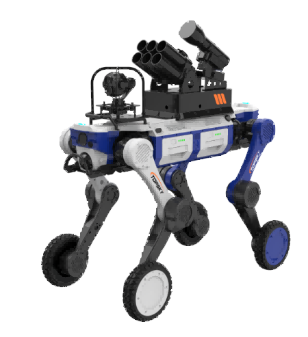 Anti-terrorism and riot control wheeled and legged robotic dog ((Large dog, wheeled legs) [Self-organizing network, integrated all-in-one remote controller, 38mm six-shot launcher, capture net launcher, dual-light three-axis stabilized gimbal]