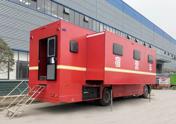 3、整車自行式設(shè)計(jì),機(jī)動(dòng)性能好,適合公路運(yùn)輸,可提供野外宿營(yíng)、洗漱、休閑等功能,保障能力強(qiáng);整車配有空氣調(diào)節(jié)系統(tǒng),生活舒適度好,可雙側(cè)擴(kuò)展,空間利用率大。
