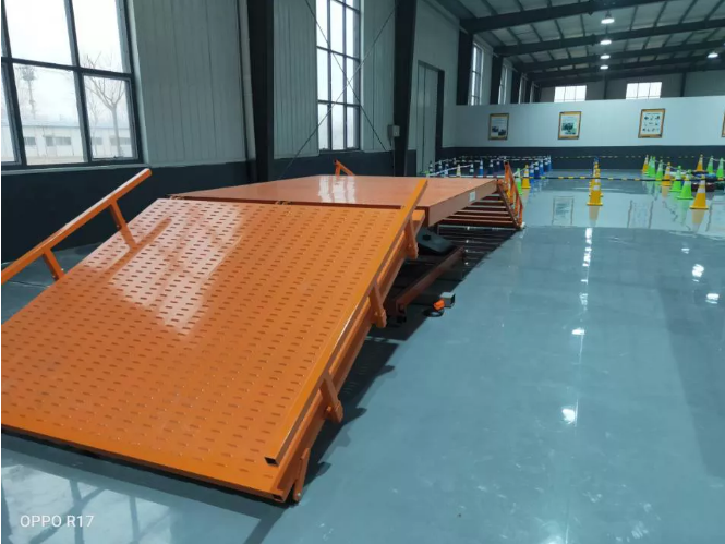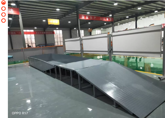 特種機器人爬坡性能檢測裝置可用于各種特種機器人爬坡、側傾倒、爬樓梯的性能測試。表面烤漆,整體防銹。整體分為兩側不同的測試板塊,一側為爬坡與側傾倒測試板,表面為標準防滑板,防滑板底部有方管加固架,保證板面強度。 另一側為爬樓梯測試板,臺階尺寸根據相關檢測標準制定。中間為可升降平臺,可調節不同的高度,從而滿足兩側邊測試板尺寸要求。