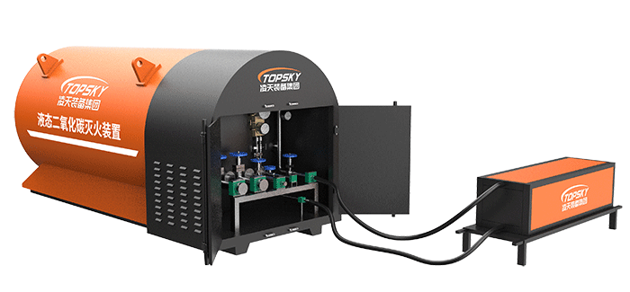 采用液態(tài)二氧化碳為滅火劑,運(yùn)輸至井下火區(qū)近附,經(jīng)自增壓調(diào)控系統(tǒng)實(shí)現(xiàn)罐內(nèi)穩(wěn)壓,并通過遠(yuǎn)距離輸送管路將液體從罐內(nèi)向密閉火區(qū)噴射,利用其急速膨脹氣化和吸熱效率高的物理特性,可實(shí)現(xiàn)惰性降氧,吸熱降溫,吸附阻化等功能,從而可快速進(jìn)行井下煤層自燃火災(zāi)的預(yù)防與撲滅等。