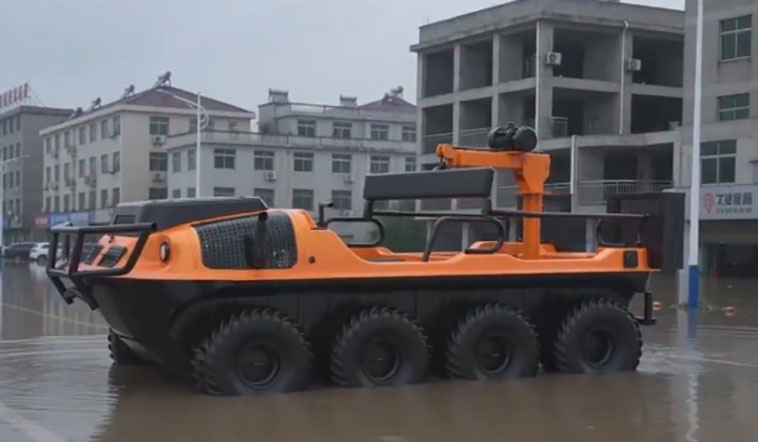 針對水災頻發的地區,水域救援任務必不可少。但往往洪澇災害、城市內澇往往伴隨著惡劣的天氣和崎嶇的地形,沖鋒舟需要多次搭載不同交通工具并數次轉移,全地形多功能水陸兩棲運輸車可以輕松通過水淹、泥濘、沼澤等環境,無需人力搬運,實現陸地駕駛和水中行走自由切換,以最快的時效抵達現場實施救援。