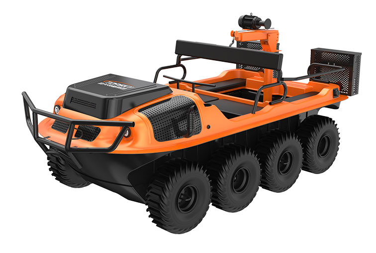 全地形多功能水陸兩棲運輸車可提供一種安全的運輸方式和可靠的運載平臺,產品可以在山地環境、濕地環境、沼澤環境、水面環境、叢林環境等多種工作環境下,實現全天候連續作業。并且可以在災害現場巡邏勘察、運送受傷人員、并有效實施援救。