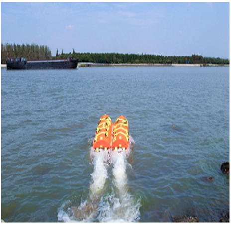 用于快速營救落水人員,可自動調(diào)整姿態(tài)。負載能力不小于110kg,空載速度不小于25km/h,載人速度不小于6km/h,水面遙控距離不小于800m。最高時速 42.2km/h