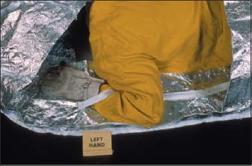 1)展開避火罩時,一定要用手臂和腿、腳固定住避火罩,這樣既可以防止避火罩被風吹走,又可以隨時進出避火罩內;