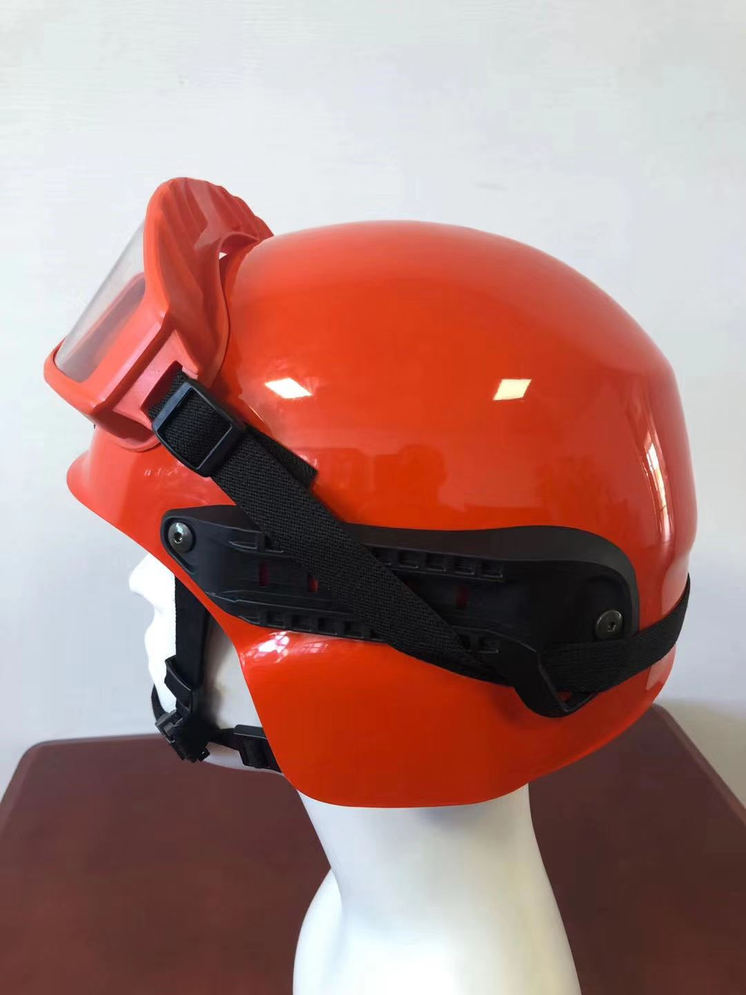 產品是一款為森林消防員和野外救援人員設計的性能較好的頭部防護裝備。該產品采用人體工學結構,集成頭部沖擊防護、面部遮罩等功能于一體,能夠較好的滿足滅火作戰和緊急救援任務中對頭部安全的要求,是保障消防員人身安全的重要基礎裝備之一。