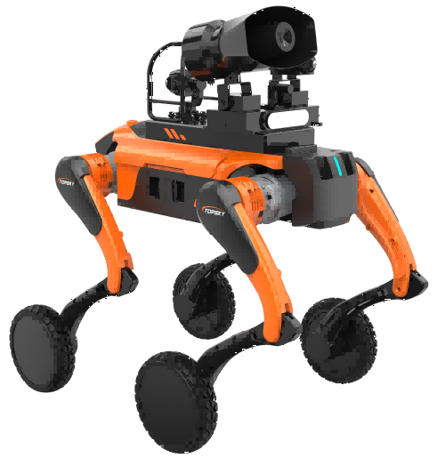 主要功能:是一款融合仿生設計、智能感知與遠程控制技術的輕量化無人偵察裝備,以仿生四足步態加輪足為核心優勢,專為復雜、高危、人跡難至場景打造,可替代人工執行各類輔助偵察任務,充當“移動智能偵察兵”,大幅降低人員作業風險,提升偵察效率與精準度,廣泛應用于消防應急、國防安保、工業巡檢、災害救援等多個領域