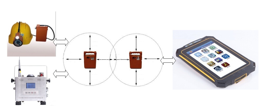 該系統(tǒng)采用無線連接方式的信號(hào)中繼與傳輸,應(yīng)急通信網(wǎng)絡(luò)的通信距離可達(dá)20公里。無線通信網(wǎng)絡(luò)采用自組織、自愈合方式快速形成多跳鏈狀或網(wǎng)狀網(wǎng)拓?fù)浣Y(jié)構(gòu),無線通信距離不小于2000米,具有快速部署、高帶寬、低時(shí)延、可靠性強(qiáng)等特點(diǎn)。井下救援人員或工作人員,通過佩戴礦用本安型平板計(jì)算機(jī)、配套的低照度攝像頭自帶語音通話、無線中繼器、多參數(shù)測(cè)定儀等裝備,將現(xiàn)場(chǎng)的實(shí)時(shí)圖像、語音、環(huán)境參數(shù)等信息實(shí)時(shí)回傳到指揮平臺(tái),調(diào)度指揮人員可以實(shí)時(shí)了解現(xiàn)場(chǎng)情況,并對(duì)現(xiàn)場(chǎng)人員進(jìn)行調(diào)度指揮。