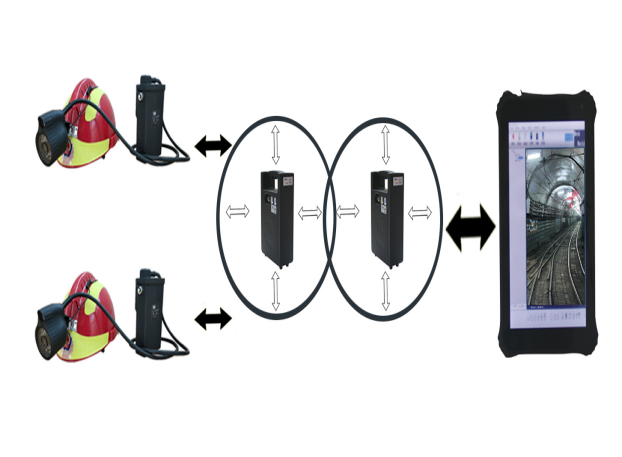 該系統采用無線通信網絡采用自組織、自愈合方式快速形成多跳鏈狀或網狀網拓撲結構,無線通信距離不小于2000米,具有快速部署、高帶寬、低時延、可靠性強等特點。井下救援人員或工作人員,通過佩戴礦用本安型平板計算機、配套的低照度攝像頭自帶語音通話、無線中繼器等裝備,將現場的實時圖像、語音等信息實時回傳到指揮平臺,調度指揮人員可以實時了解現場情況,并對現場人員進行調度指揮。