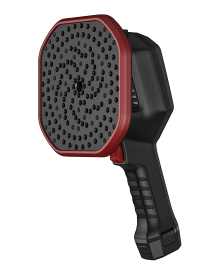 本產(chǎn)品是一款手持式的工業(yè)聲學成像儀,廣泛應用于電力局放,帶壓或真空條件下的氣體泄漏檢測、氣密性檢測、設備異響定位等多種場景。儀器利用麥克風陣列波束形成技術獲取聲源分布數(shù)據(jù),并配合高清攝像頭實時采集視頻畫面,通過將聲源分布數(shù)據(jù)同視頻圖像進行聲像融合,把變化的聲源動態(tài)的呈現(xiàn)在顯示屏上。 可以幫助現(xiàn)場巡檢人員快速定位故障,提供處置依據(jù)。